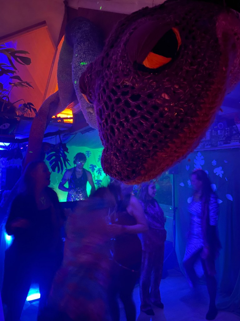 Lini-Kunda has been seen, awakened and danced with on diverse festivals by many. She can warm up a dance-floor, invite participants to move her and be moved by her, shed her old skin and bring transformation to anyone who is ready. She can be the holder of space or connect participants in a ritual. Sometimes she swallows whole worlds and if you dare to kiss her you will be granted a wish.